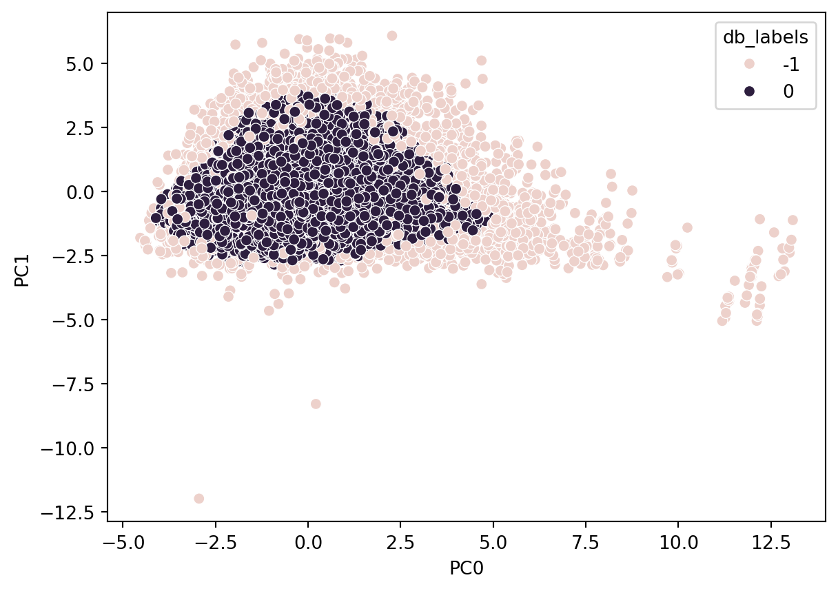 Performing density-based clustering using DBSCAN on the source data produced a silhouette score of approximately 0.33.