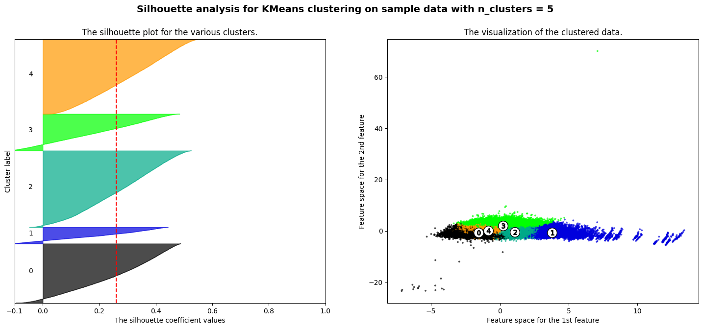 Using this method the best performing cluster counts included k=2, k=4 and k=5