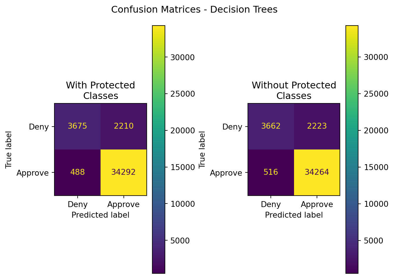 | Random Forest | With Protected Classes | 0.928218 | 0.936082 | 0.983209 | 0.959067 | 0.793219 |